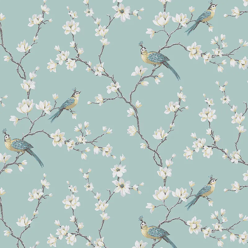 Обои LOYMINA La Belle Epoque BQ5 006 Винил на флизелине (1*10,05) Бирюзовый/Голубой, Деревья/Птицы