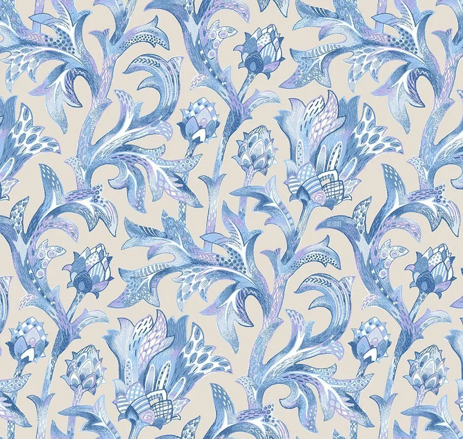 Обои Loymina Origins арт-Als1-006 представляют собой рулонные флизелиновые обои, созданные в России. Они имеют нежные бежевые и голубые оттенки, а их дизайн включает цветочные и фруктовые мотивы, что придаёт интерьеру элегантный восточный и английский стиль.