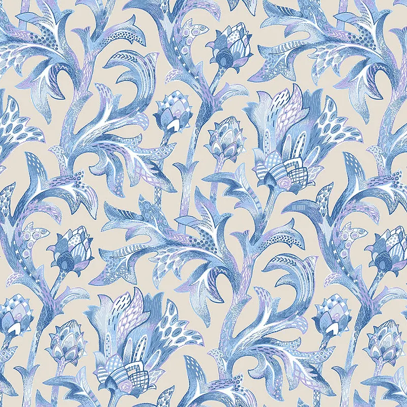 - Уникальный дизайн: Рисунок "Вензель" в сочетании с голубыми, синими и серыми оттенками создаёт атмосферу роскоши и утончённого стиля.