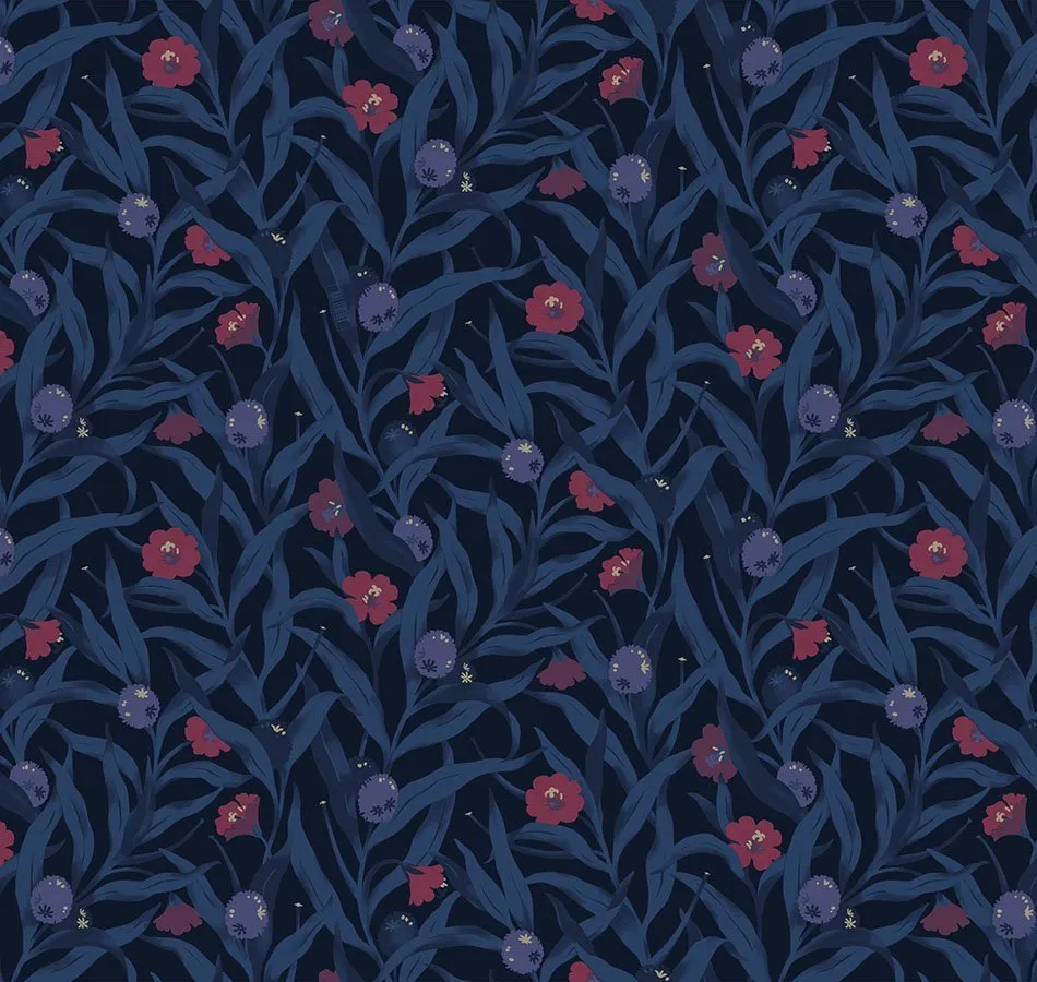 Обои Loymina Origins арт-Als3-021 — это флизелиновые обои с мелким цветочным рисунком в стиле Уильяма Морриса. Их глубокий синий цвет и изящный узор создают уютную атмосферу в интерьере, подходя для оформления различных помещений, таких как гостиная и спальня.