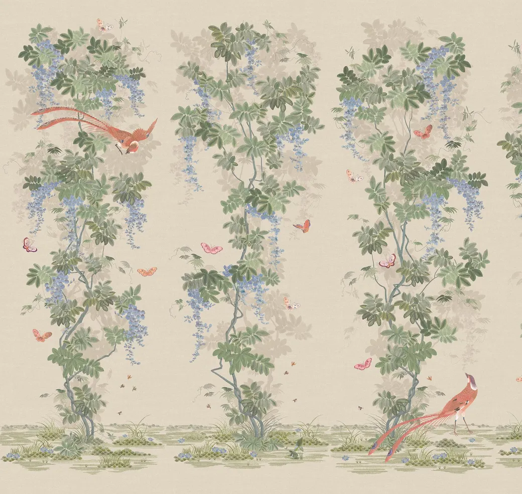 Обои Loymina из коллекции Панорама представляют собой флизелиновые фотообои и панно с рисунком в стиле шинуазри. Продукция произведена в России и доступна в бежевых и разноцветных вариантах, что делает их универсальными для различных интерьеров.