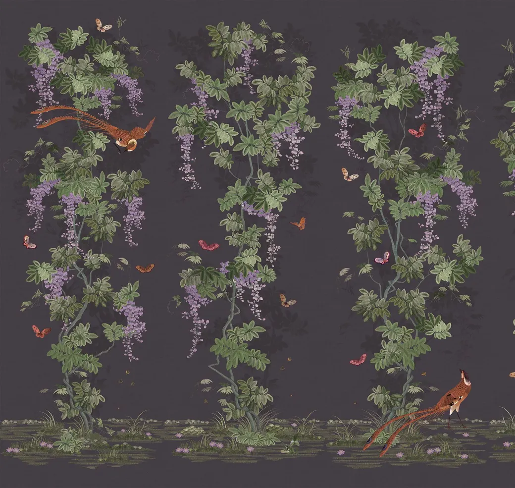 Обои Loymina арт-PNR3-022 из коллекции Панорама представляют собой флизелиновые обои с эффектным рисунком в стиле шинуазри. Основной цвет – фиолетовый, что позволяет создавать акцентные зоны в интерьере. Эти обои подходят как для спальни, так и для гостиной.