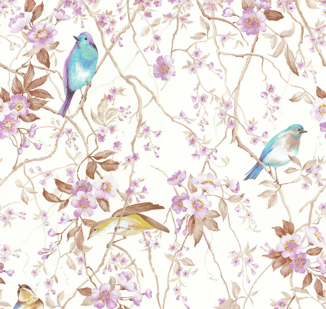 - Рисунок: Цветы, птицы, растения, ветки, листья