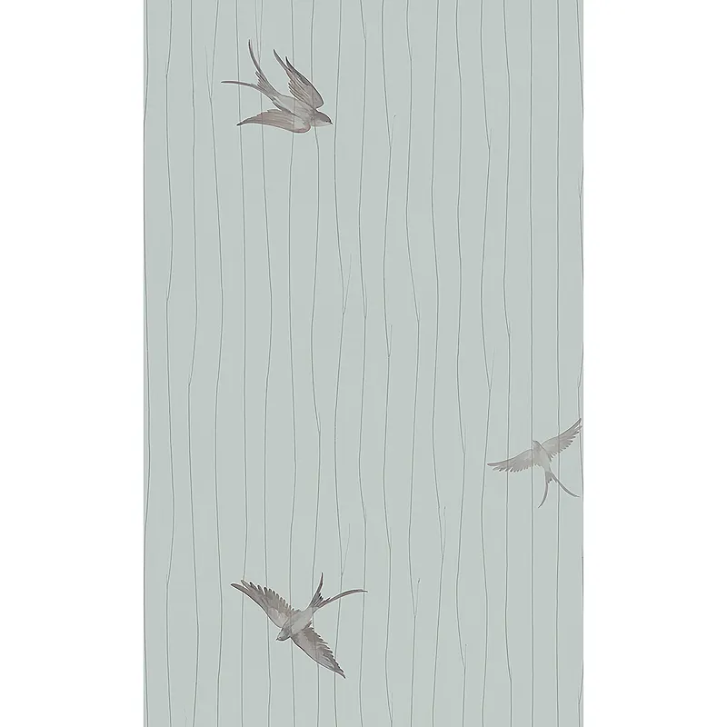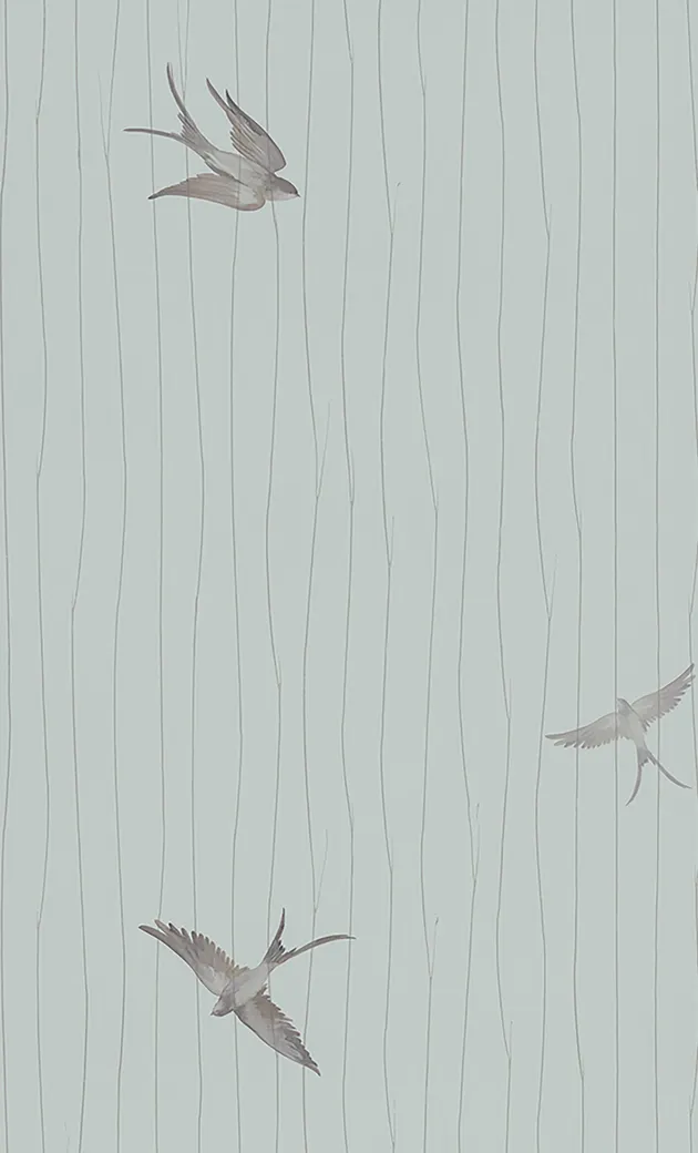 Обои Marburg Essentiell 63387 Винил на флизелине (0,53*10,05) Бирюзовый/Коричневый/Серебряный, Птицы/Линии