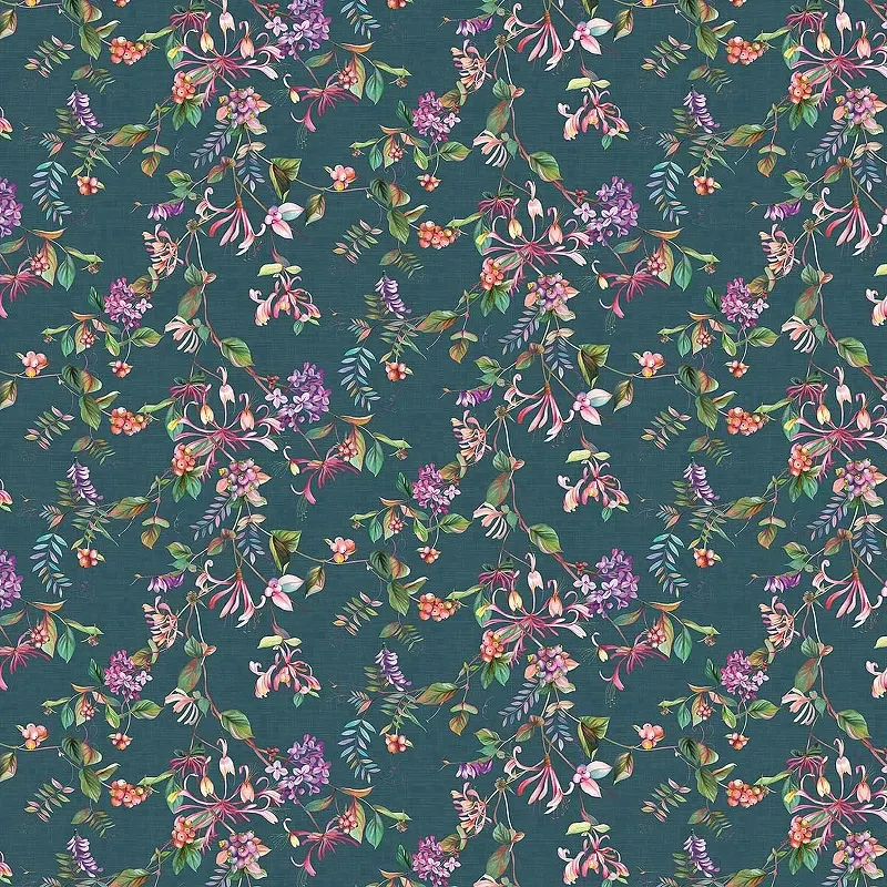 Обои Marburg Flora 47454 Винил на флизелине (0,53*10,05) Синий/Розовый/Зеленый, Листья/Цветы