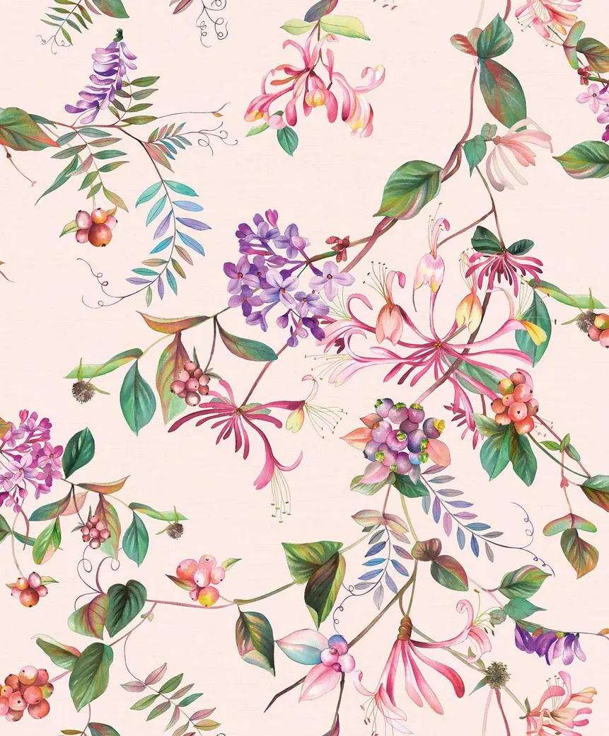 Обои Marburg Flora 47457 Винил на флизелине (0,53*10,05) Фиолетовый/Розовый/Зеленый, Листья/Цветы