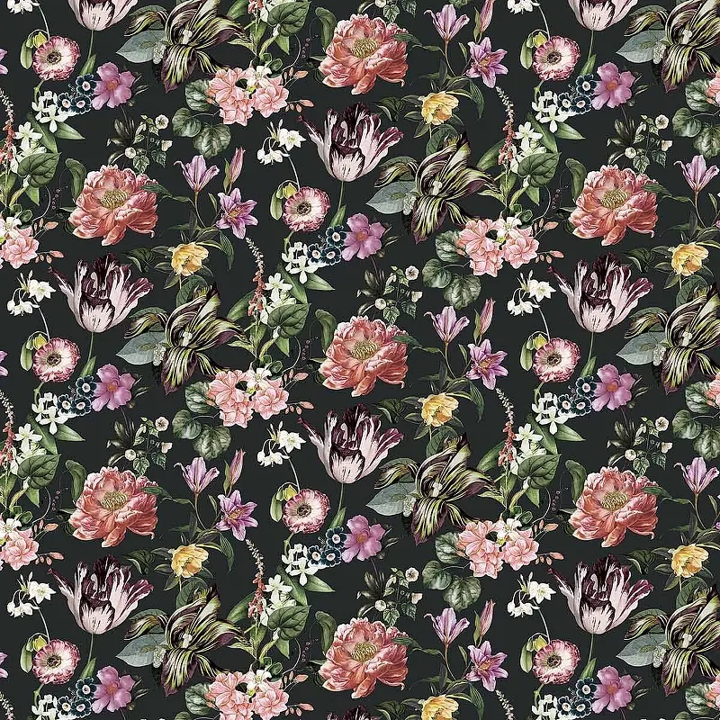 Обои Marburg Flora 47460 Винил на флизелине (0,53*10,05) Черный/Розовый/Зеленый, Листья/Цветы