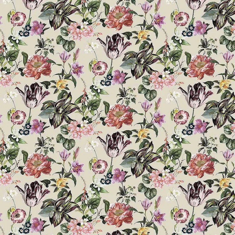 Обои Marburg Flora 47461 Винил на флизелине (0,53*10,05) Бежевый/Розовый/Зеленый, Листья/Цветы