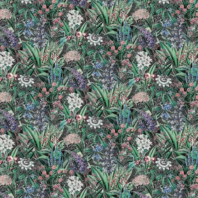 Обои Marburg Flora 47475 Винил на флизелине (0,53*10,05) Черный/Фиолетовый/Серый/Зеленый, Цветы/Листья/Штукатурка