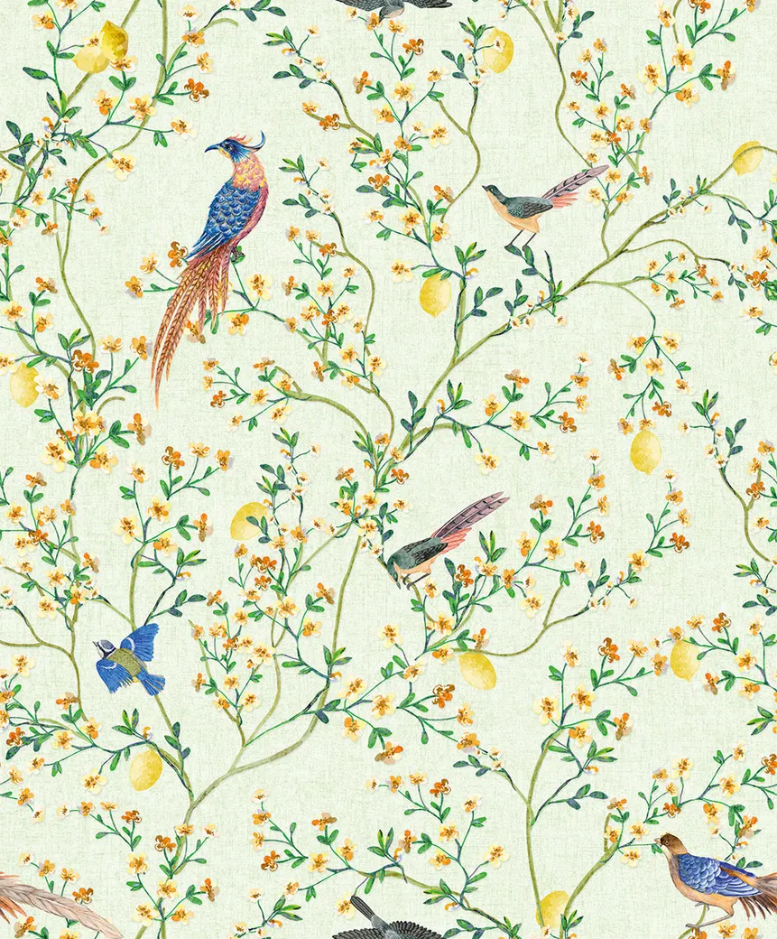 - Разнообразие рисунков: Мелкий цветочный рисунок и изображения птиц придают живость стенам.