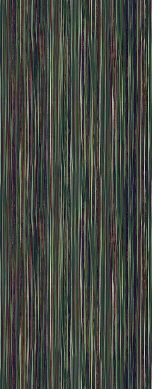- Цветовая палитра: Глубокие оттенки зеленого и фиолетового создают динамику в пространстве.