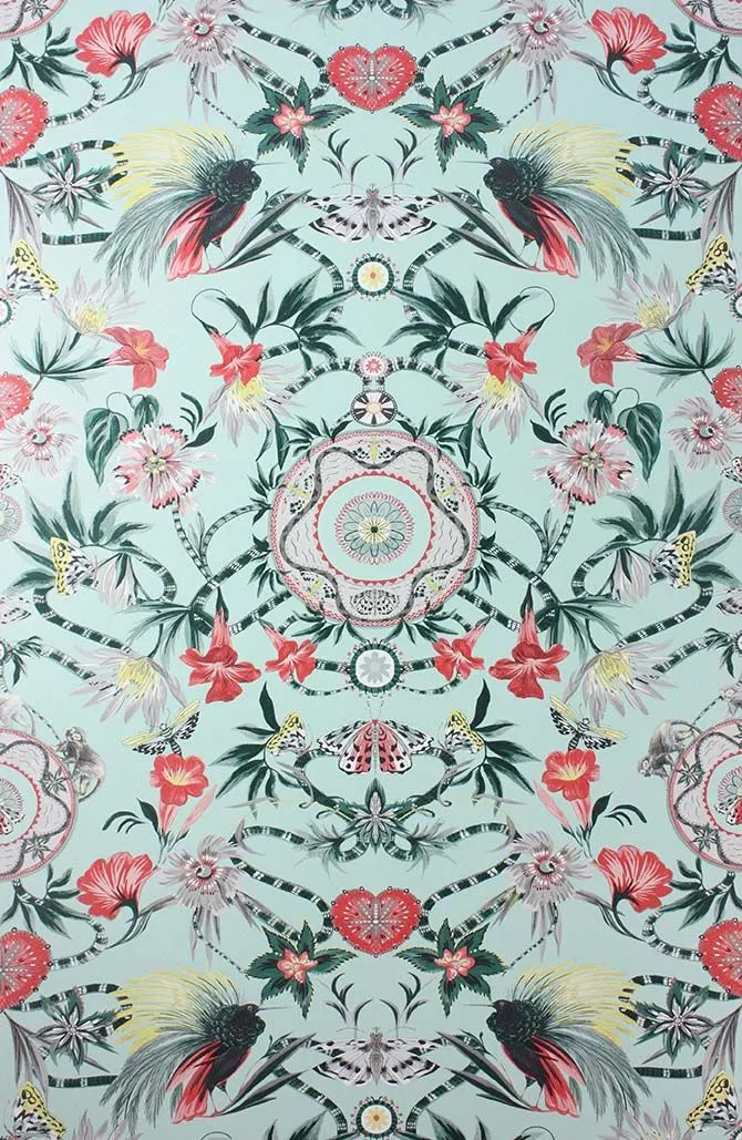 Обои W6950-03 от Matthew Williamson представляют собой флизелиновый материал в коллекции Durbar. Главные цвета — зеленый и голубой, которые создают атмосферу спокойствия и гармонии в интерьере.