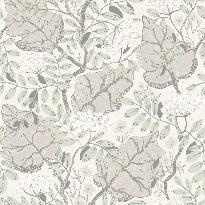 Обои Midbec Lina арт-55031 представляют собой флизелиновые рулонные обои серого цвета с рисунком растений. Эти обои подходят для различных помещений, включая кухню, спальню и гостиную, и обеспечивают спокойную атмосферу в интерьере.