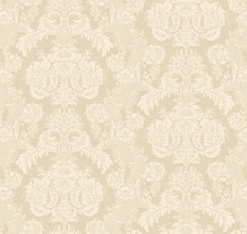 - Флизелиновые обои размером 1*10,05 м, бежевого цвета с рисунком "Дамаск".