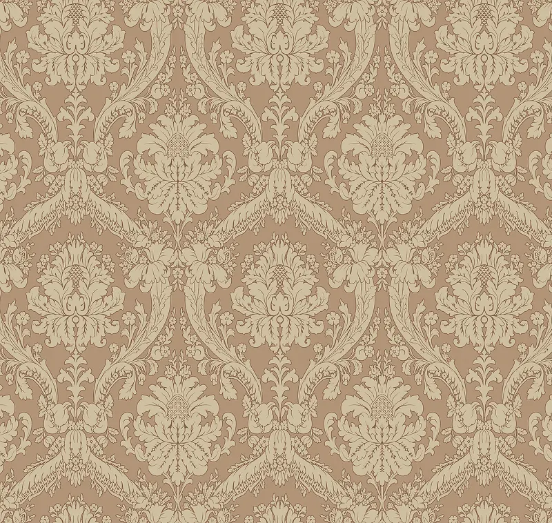 - Бежевые обои с дамасским рисунком создают атмосферу уюта и гармонии, делая помещение более привлекательным.