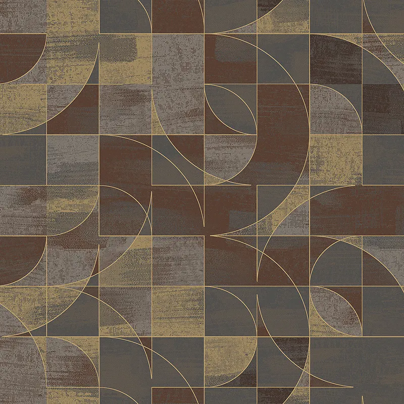 - Флизелиновые обои размером 1x10,05 м, коричневый цвет, геометрический рисунок.