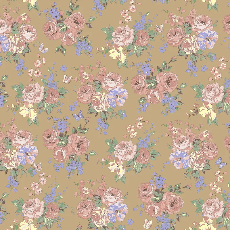 - Флизелин (1*10,05) Коричневый/Розовый, Цветы