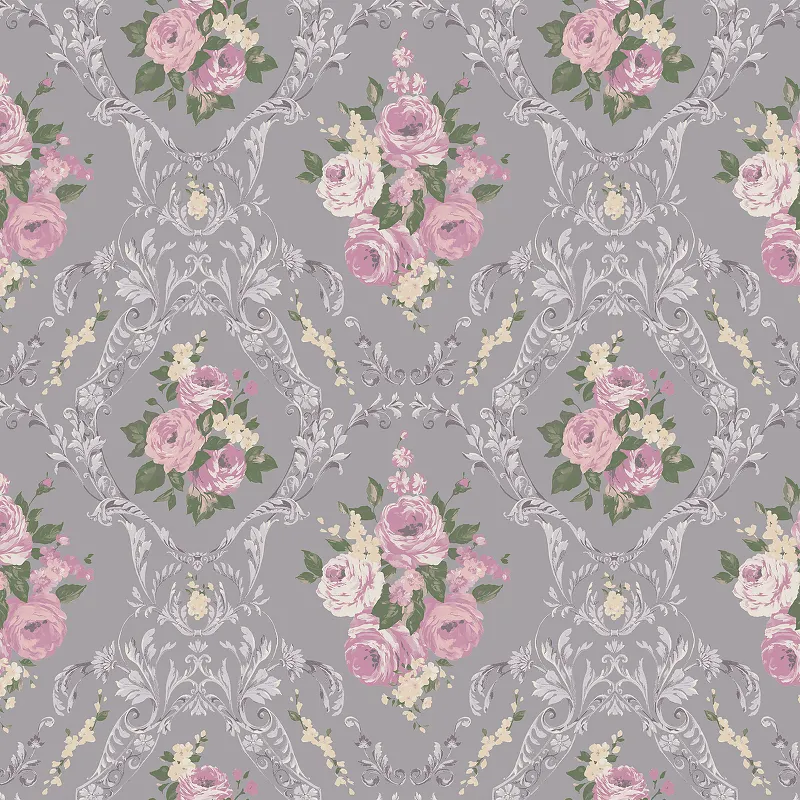 Обои Milassa Joli Joli4 007 Флизелин (1*10,05) Розовый/Серый, Орнамент/Цветы