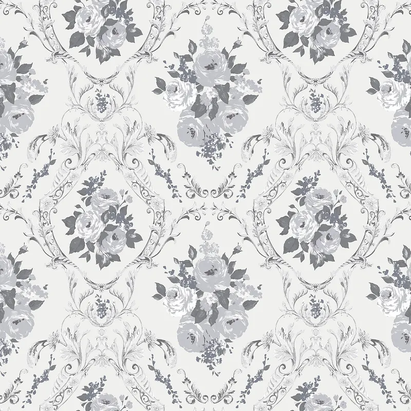 - Изысканный дизайн: Серый цвет и рисунок с орнаментом/цветами придают помещению утончённую атмосферу.