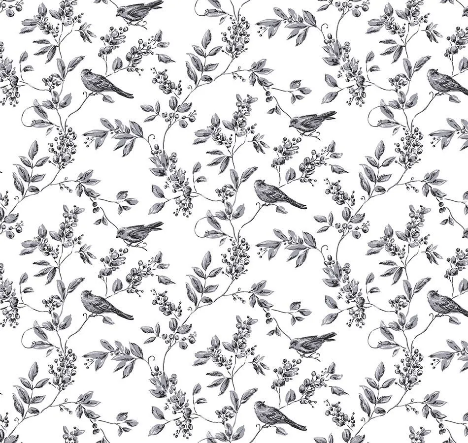 Обои Neo8-001 от бренда Milassa представляют собой флизелиновый материал с дизайнерским декором. Белый фон с черно-белыми рисунками птиц и растений создает легкость и свежесть в интерьере. Данная модель идеально подходит для оформления больших стен в спальне или гостиной.