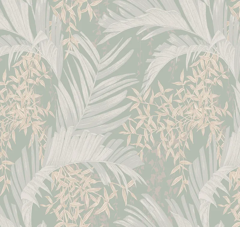 Обои Milassa Okinava Ok4 006 Флизелин (1*10,05) Зеленый/Серый/Бежевый, Листья