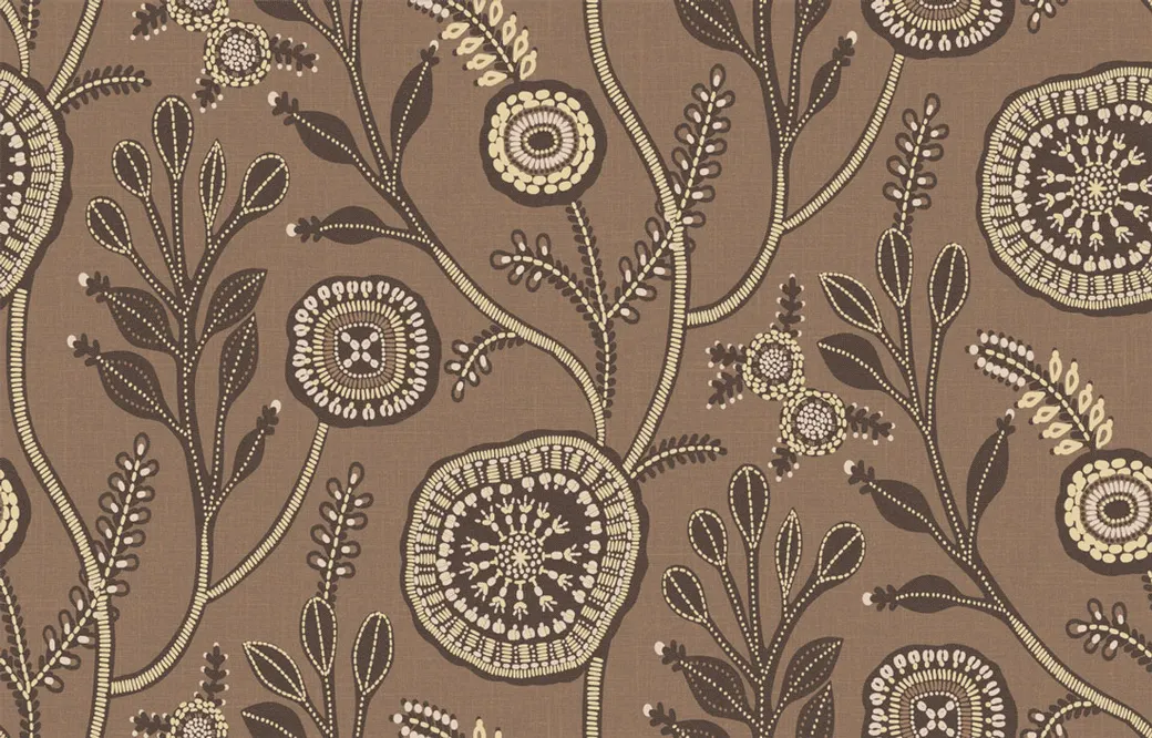 Обои Milassa из коллекции "Полинезия" представляют собой флизелиновые рулонные обои с восточным цветочным рисунком. Они идеально подходят для оформления современных интерьеров в стиле джапанди, сочетая японскую простоту и скандинавский минимализм. Темный коричневый цвет добавляет уют и глубину в пространство.