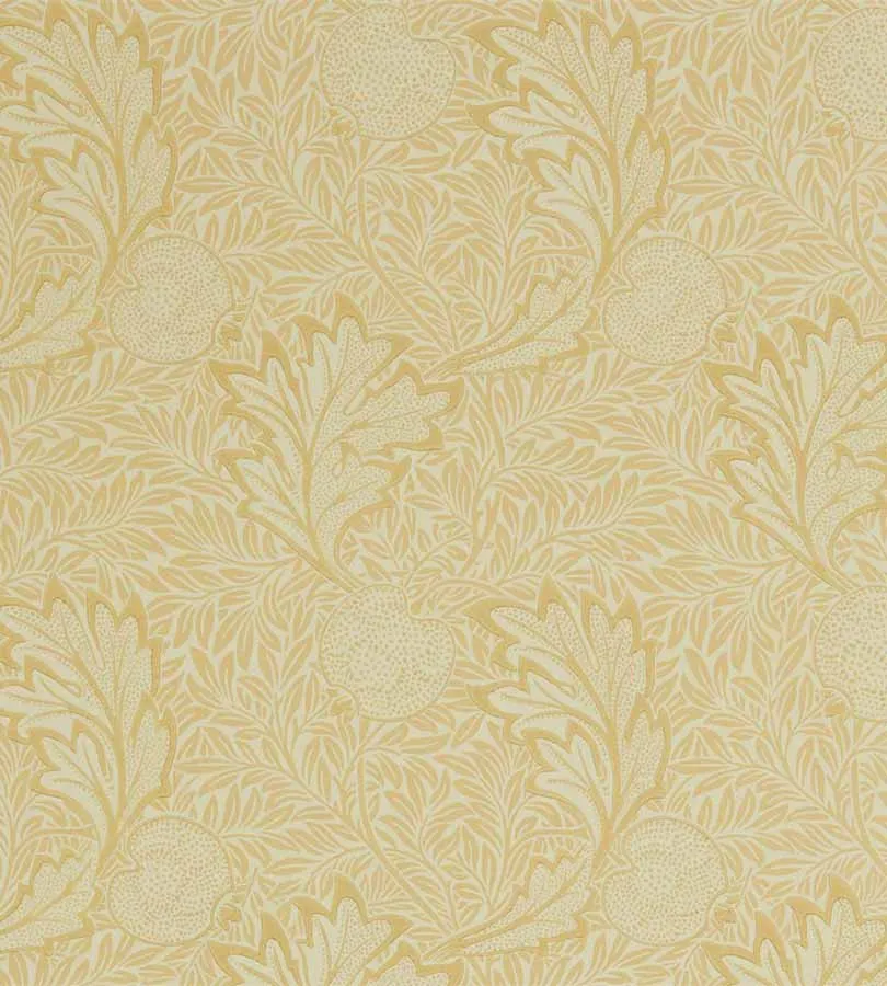 Обои Morris&Co Melsetter арт-216691 представляют собой рулонные бумажные покрытия в английском стиле. Эти обои отличаются выразительным растительным декором, который создает уютную атмосферу в помещении. Цветовая гамма включает желтые и бежевые оттенки, что позволяет им гармонично вписаться в различные интерьеры.