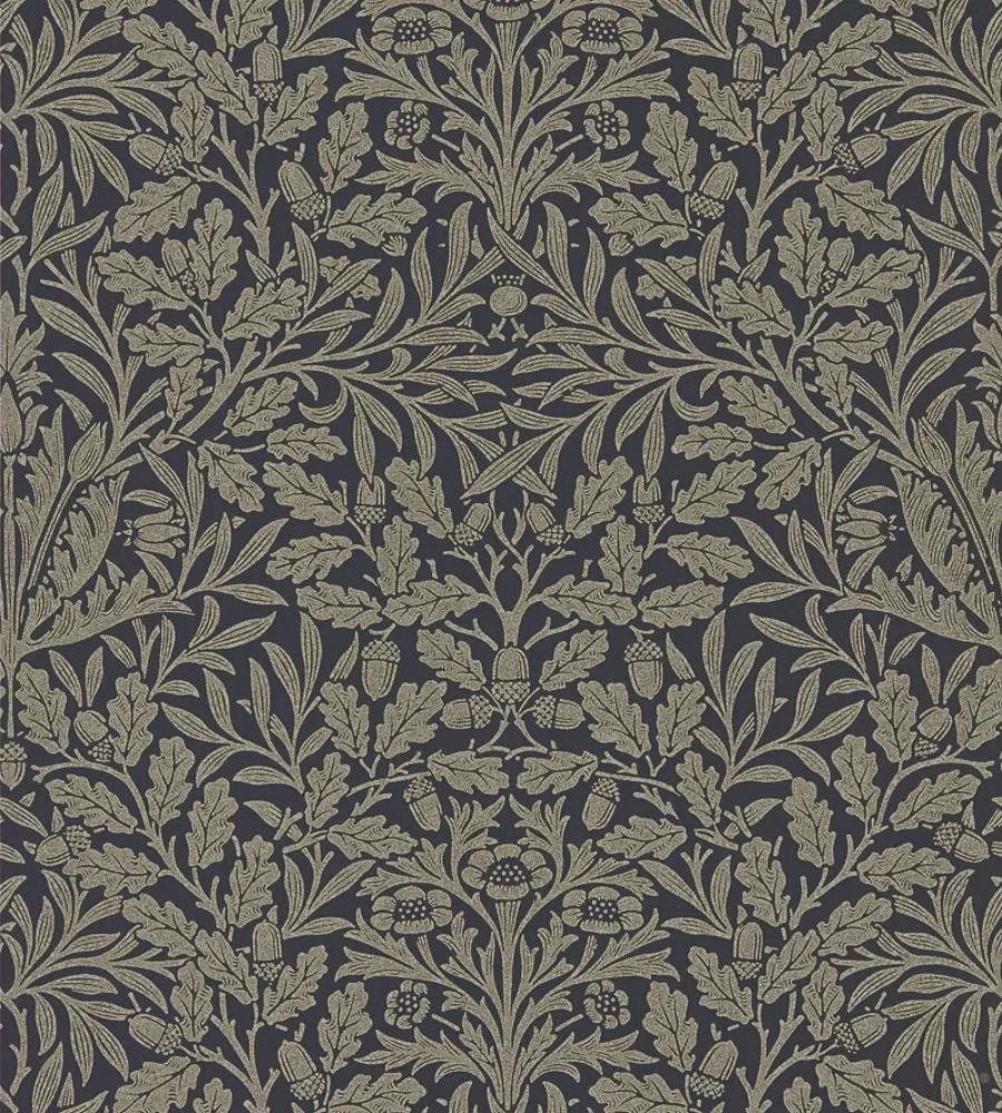 Обои Morris&Co Pure (арт-216033) представляют собой флизелиновое покрытие с богатым английским декором. Они выполнены в черном и золотом цветах, что придаёт помещению элегантность и изысканность. Эти обои идеально подходят для кабинетов, спален и гостиных.