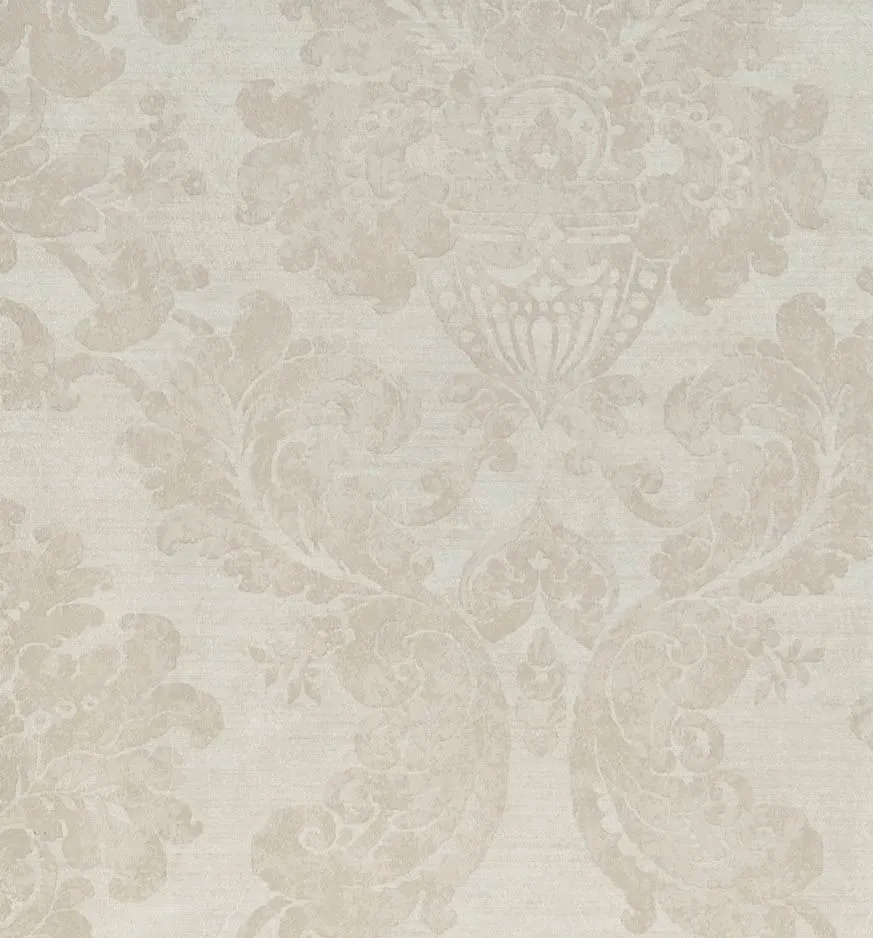 Обои Portofino Samarkanda 75900 — это виниловые обои на флизелине, произведенные в Италии. Они подходят для различных помещений, включая гостиную, кабинет и спальню, и обладают классическим дамасковым рисунком в бежевых и серых тонах.