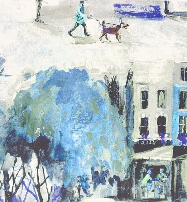 - Разнообразие цветов: серый и голубой оттенки, дополняемые желтыми и оранжевыми акцентами.