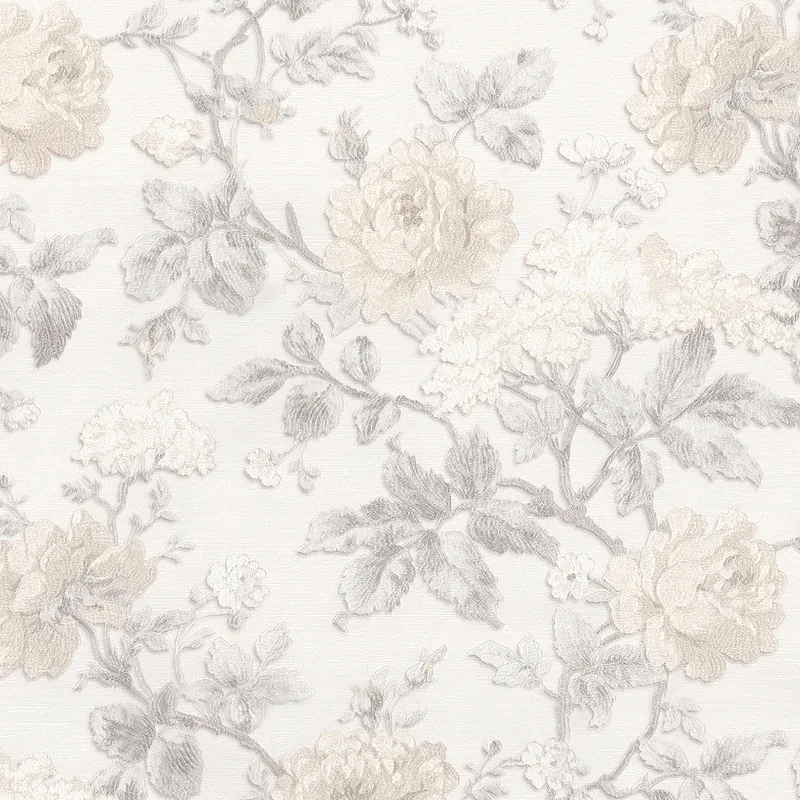 Обои Prima Italiana Carnevale 80701 Винил на флизелине (1,06*10) Белый/Бежевый/Серый, Цветы/Листья