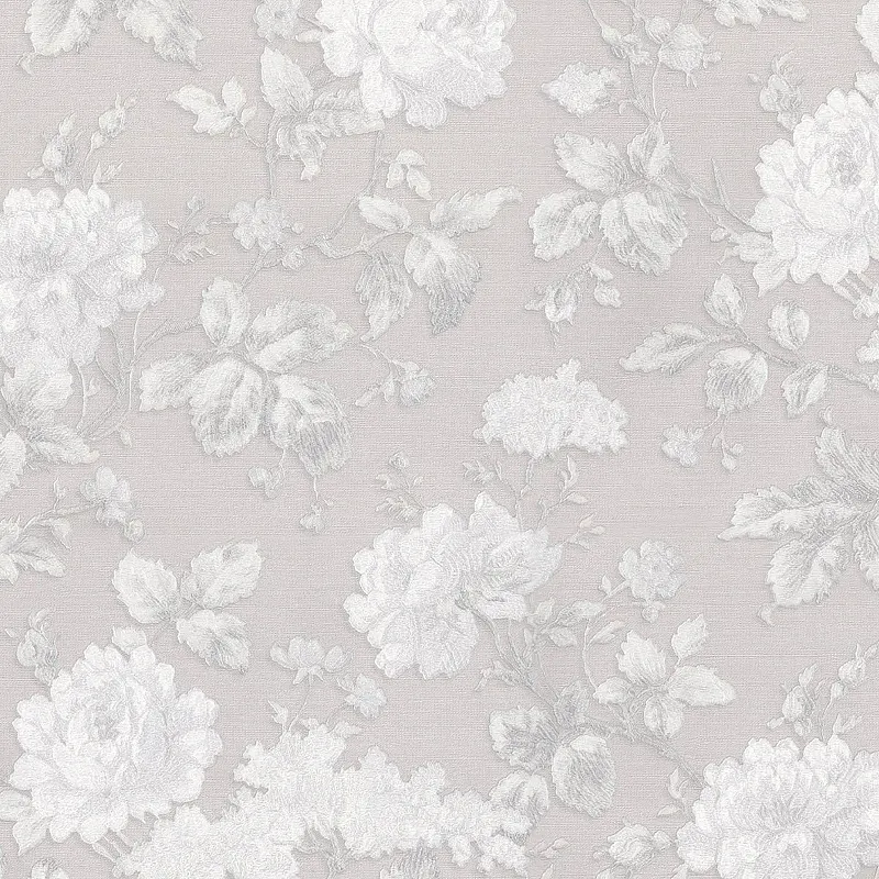 Обои Prima Italiana Carnevale 80705 Винил на флизелине (1,06*10) Серый/Белый, Цветы/Листья