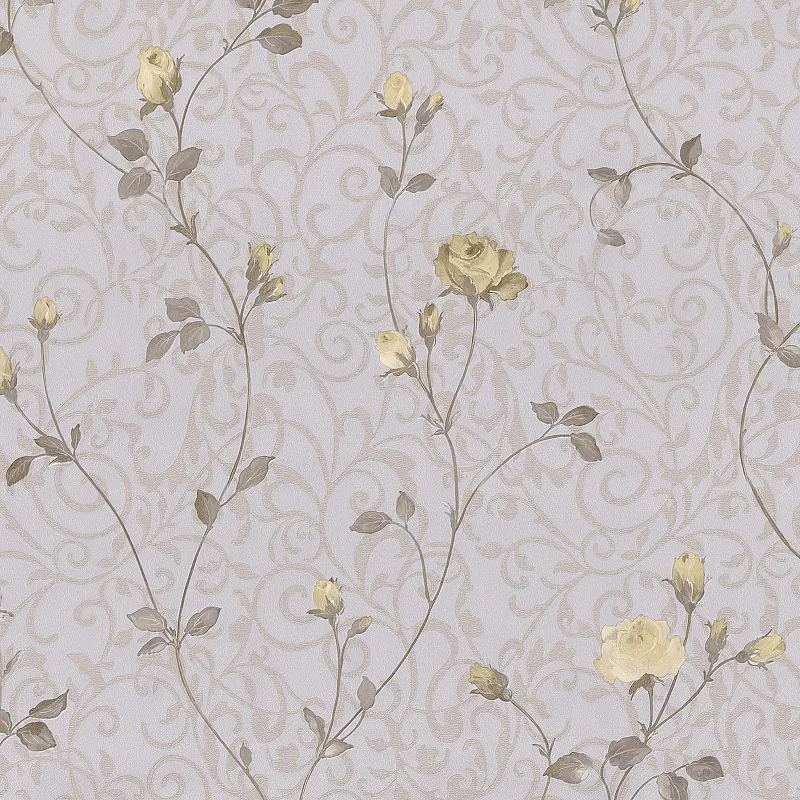 Обои Prima Italiana Colomba 80601 Винил на флизелине (1,06*10) Серый/Желтый, Вензель/Цветы