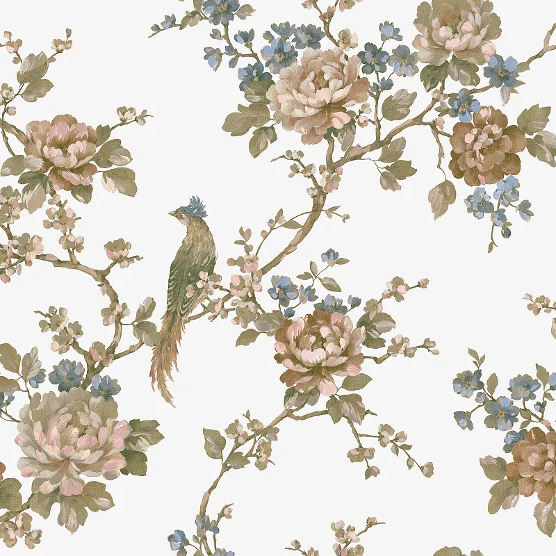 Обои Prima Italiana Ducale 80205 Винил на флизелине (1,06*10,05) Белый/Разноцветный, Цветы/Птицы