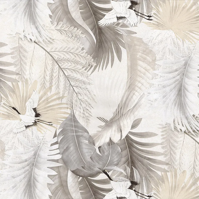 - Уникальный дизайн обоев: Изображения птиц и листьев придают интерьеру оригинальность и стиль.