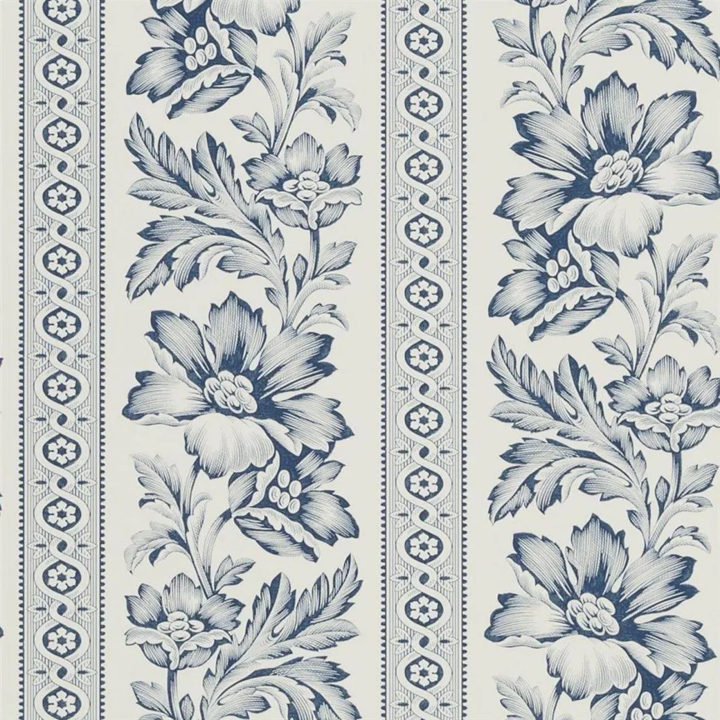 Обои PRL5008-06 от Ralph Lauren из коллекции Signature Vintage Loft представляют собой эко обои, выполненные в классическом стиле. Они имеют синий цвет с оригинальными рисунками в виде цветов и полос с узором, что позволяет создать стильный и элегантный интерьер.