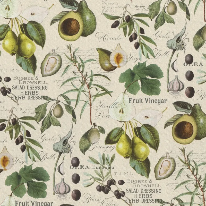 - Рисунок с растениями, фруктами и овощами: Придает интерьеру свежесть и натуральность.