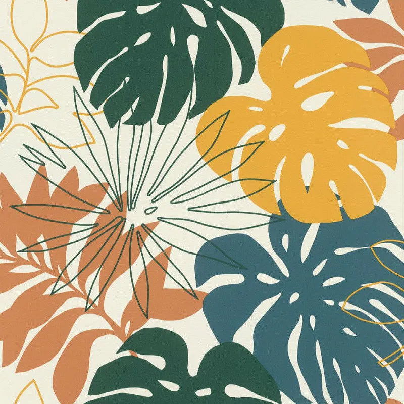 Обои RASCH Denzo II 529302 Винил на флизелине (0,53*10,05) Разноцветный, Листья