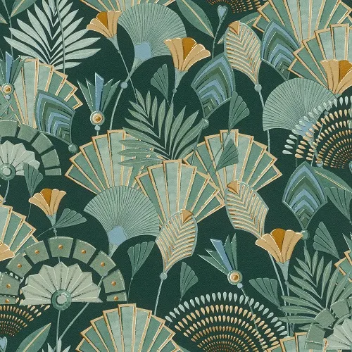 Обои RASCH Denzo II 635690 Винил на флизелине (0,53*10,05) Зеленый/Разноцветный, Цветы