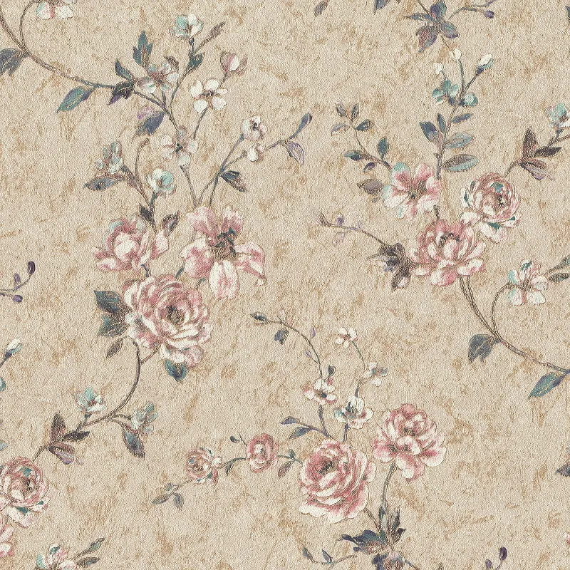 Обои RASCH Factory Style 947519 Винил на флизелине (1,06*10,05) Коричневый/Розовый, Цветы