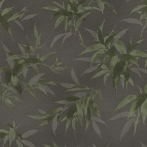 Обои RASCH Kimono 409772 Винил на флизелине (0,53*10,05) Черный/Зеленый, Листья