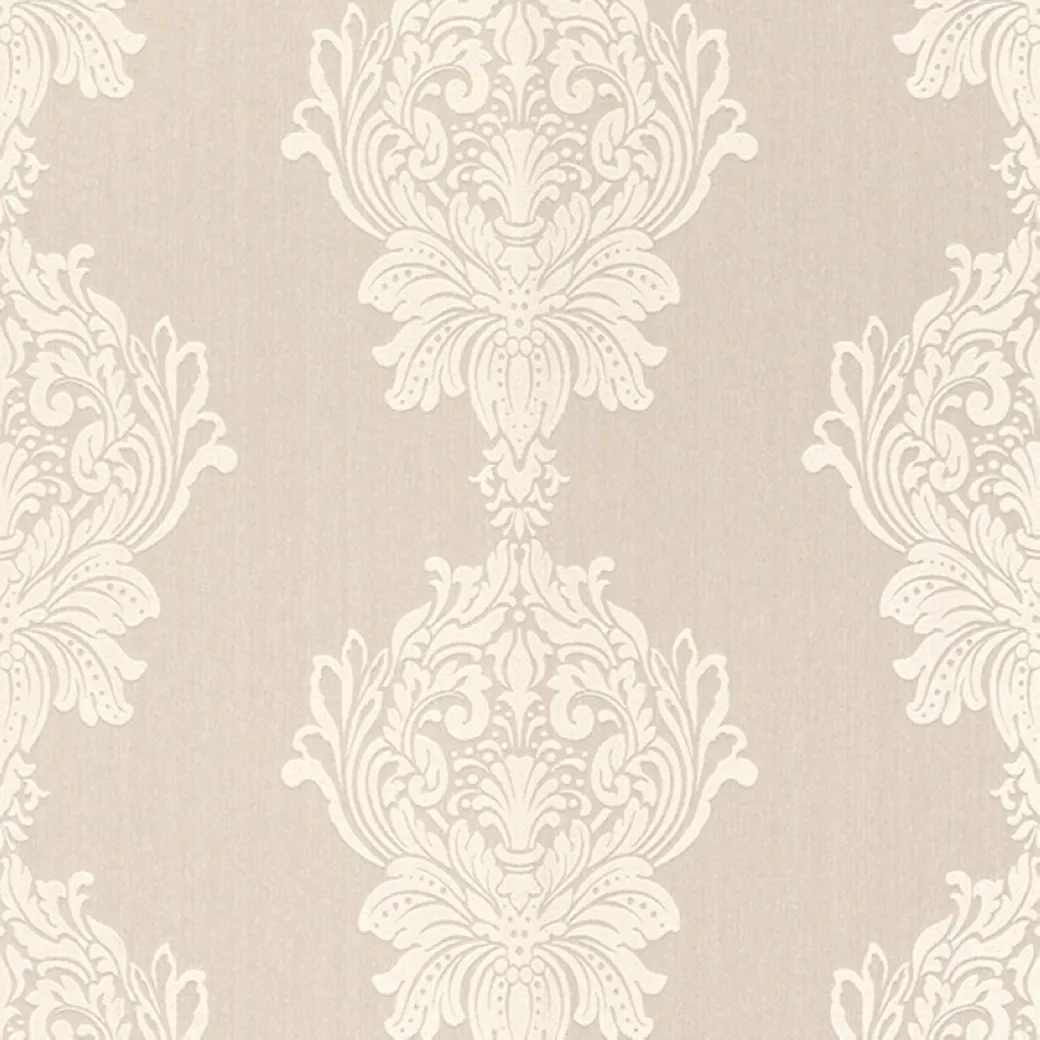 Обои Rasch Textil Cador арт-086798 – это текстильное покрытие, разработанное для создания элегантного интерьера. Они идеально подходят для различных помещений, включая гостиную, спальню и кабинет. Обои имеют рисунок в стиле дамаск и представлены в светлых бежевых и серых тонах.