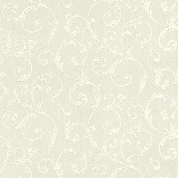 Эти обои создают светлую и просторную атмосферу в помещениях, что делает их отличным выбором для оформления интерьеров. Текстильная фактура и изысканный рисунок вензеля добавляют уникальности и стиля.