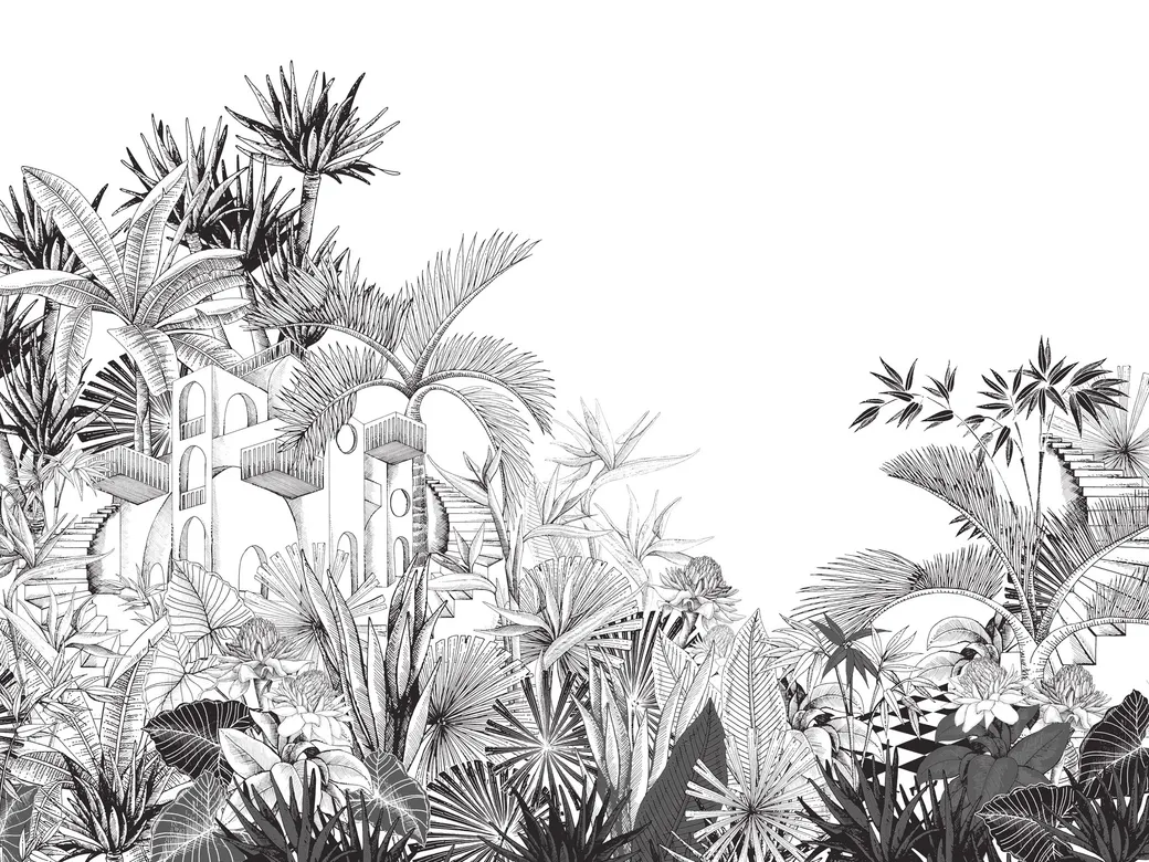 Обои Rasch Tropical House арт-688153 представляют собой виниловые обои на флизелине, предназначенные для использования в жилых и коммерческих интерьерах. Они имеют элегантный цветовой диапазон, включая белый, черный и черно-белый, что позволяет легко интегрировать их в разный дизайн.