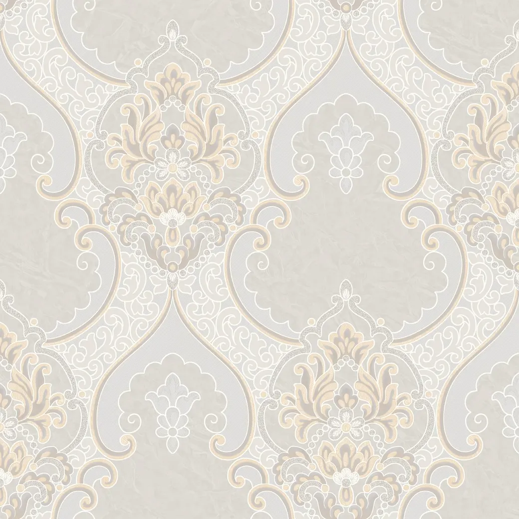 - Эстетичность рисунка: Дамасский узор придает интерьеру утонченный и изысканный вид, идеально сочетаясь с бежевым фоном.