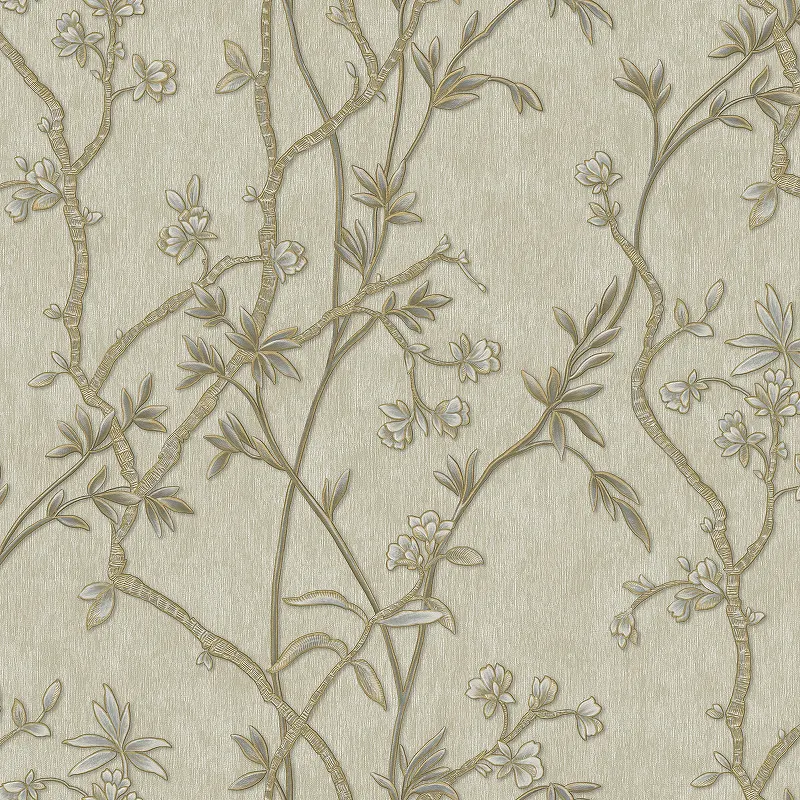 Обои Roberto Borzagi Queen I 90100-2 Винил на флизелине (1,06*10,05) Бежевый, Листья
