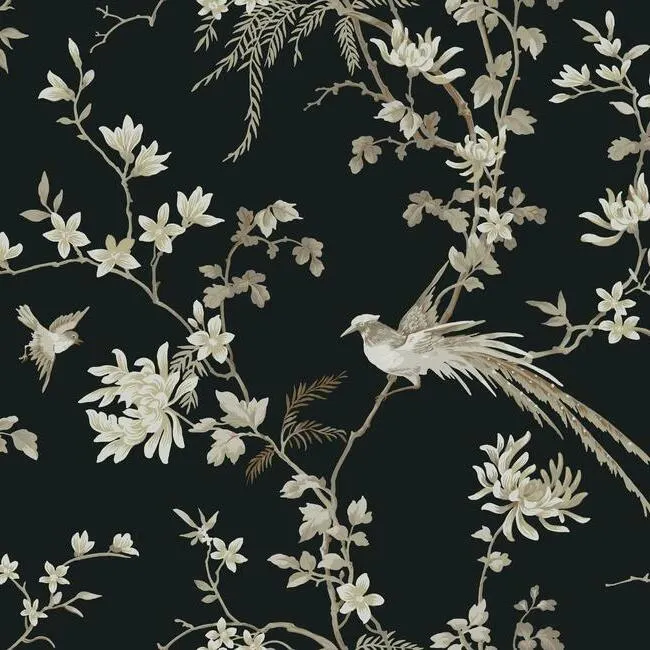 Обои KT2173 от Ronald Redding — это флизелиновые рулонные обои, предназначенные для оформления современных интерьеров. Они выполнены в черном цвете с рисунками птиц и растений, что делает их подходящими для гостиных и спален.