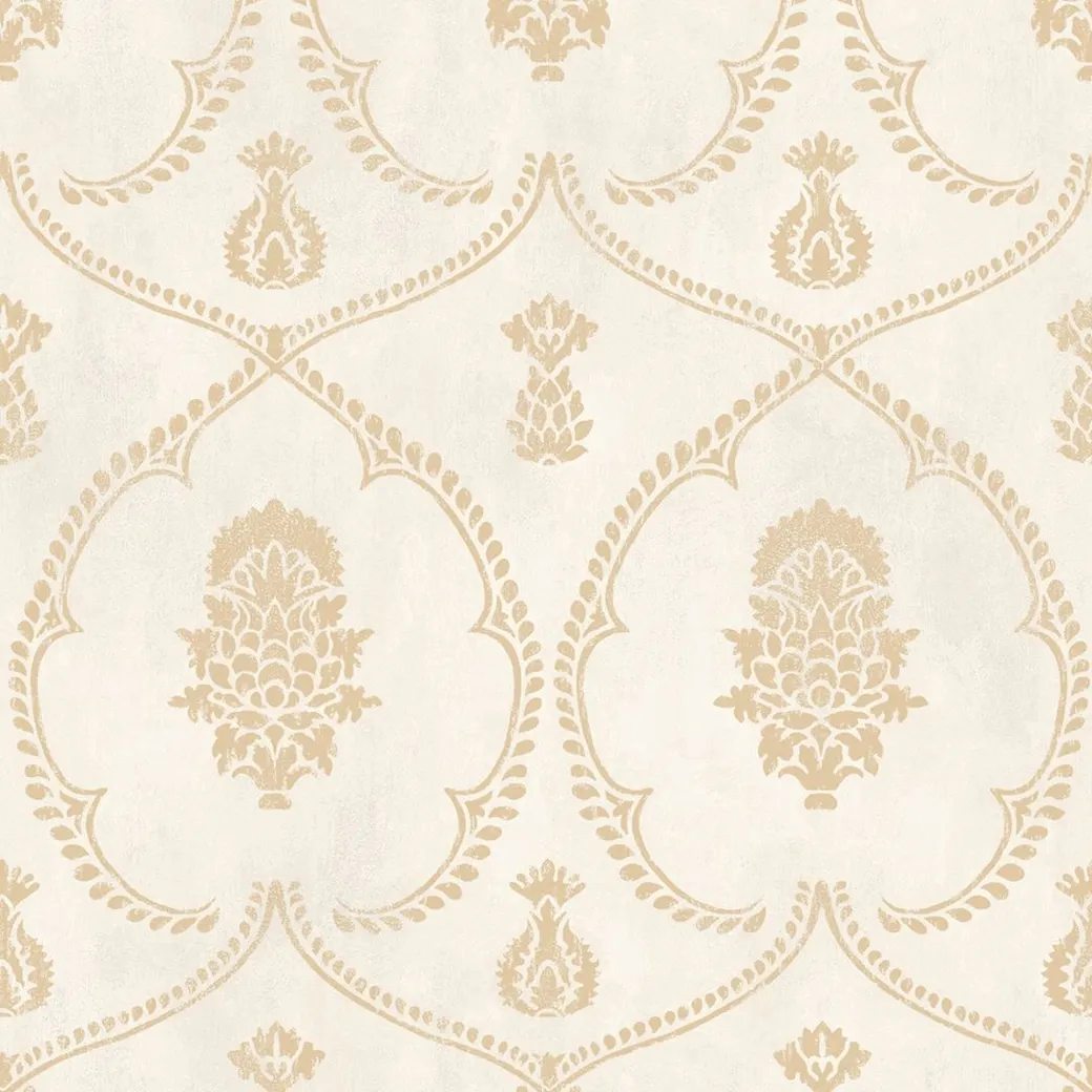 Обои MX9643 из коллекции Astoria от Ronald Redding — это флизелиновое покрытие с классическим дамасковым рисунком. Выполнены в бежевых и золотых тонах, они подходят для оформления различных интерьеров, включая спальни и гостиные.