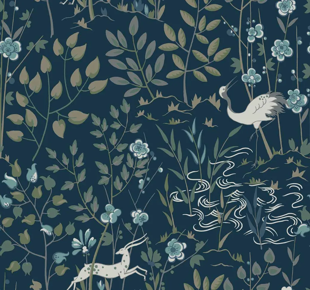 Обои HO2128 от Ronald Redding представляют собой дизайнерское решение из коллекции Traveler. Изготовленные в США, они выполнены в синих тонах и украшены изображениями животных, птиц и растений, что делает их подходящими для различных интерьеров.