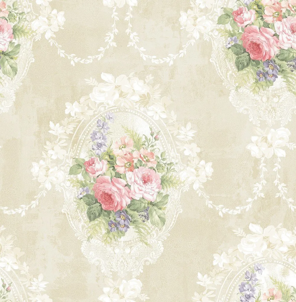 Обои Seabrook Garden Rose арт-RG60705 — это рулонные бумажные обои из коллекции Garden Rose, произведенные в США. Они имеют бежевый цвет с рисунком в виде вазонов и медальонов, что делает их подходящими для классических интерьеров.